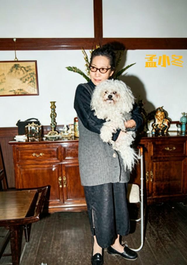 镜头前的她,神态淡然平和,正悠闲地和自己心爱的宠物小狗依偎在一起合影,眉眼间满是温柔与平静,没有半分孤苦落寞的模样,这份历经岁月沉淀后的从容,恰恰是她晚年生活最真实的写照。