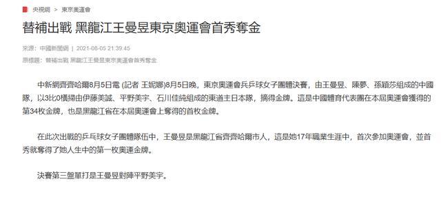 赛事结束后,黑龙江省委专门发来贺电,赞誉王曼昱为 “龙江骄傲”。