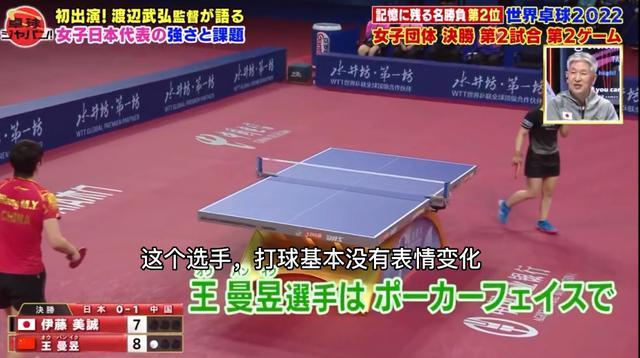渡边武弘说王曼昱打球看不出喜怒,就算被对方拿了局点,都不会改变表情。
