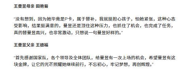 王曼昱能一步步走到如今的赛场高度,离不开父母始终如一的支持与付出。