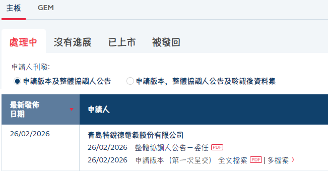 览富财经网讯:2月26日,青岛特锐德电气股份有限公司(简称:特锐德,300001.SZ)递表港交所拟主板IPO。